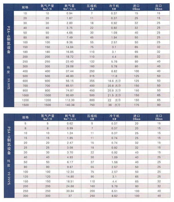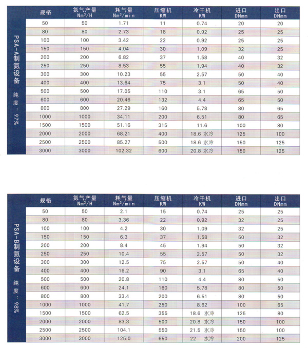變壓吸附制氮機(制氮設備)技術參數如下: